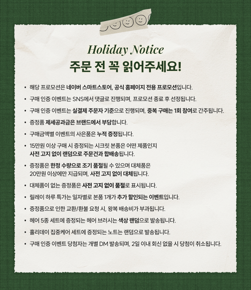 | 배송 안내 | 배송 방법 : 택배 (5만원 이상 무료배송 / 오후 5시 이전 결제 완료건 당일출고) |